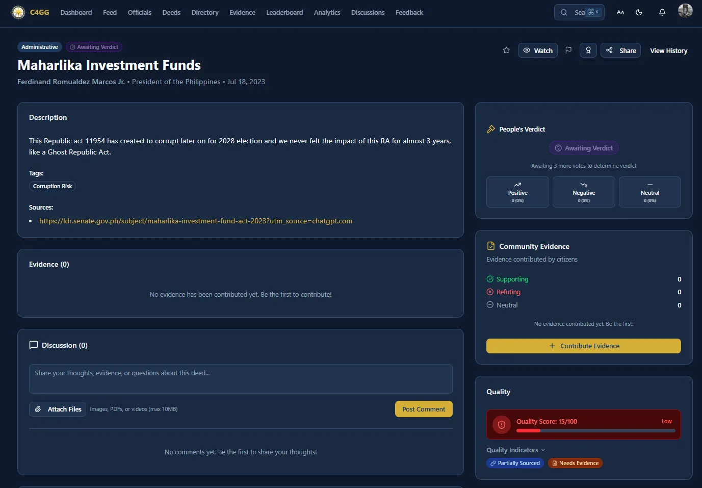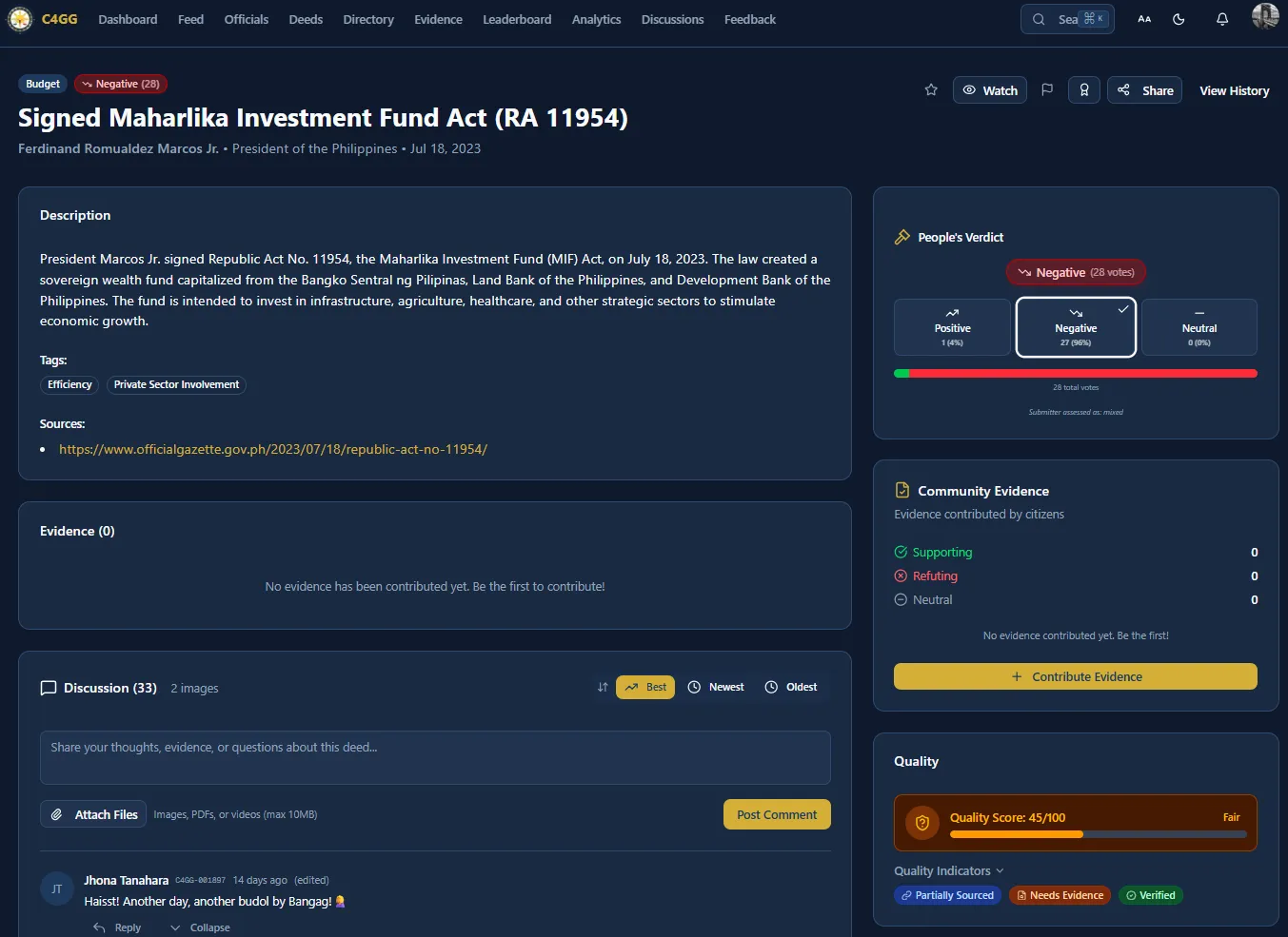 Page: https://www.c4gg.net/deeds/maharlika-investment-funds