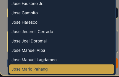 The data on the Related Official dropdown box displays names up to those that starts with J.